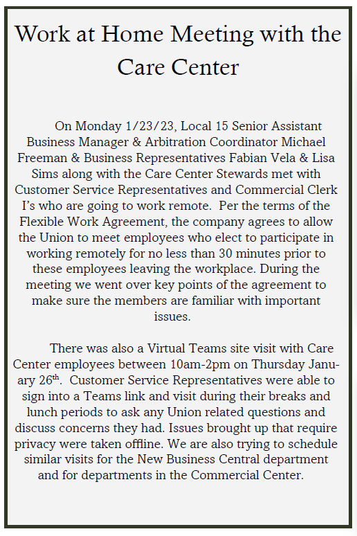 Union Office - (630) 515-0381 | Union Fax - (630) 515-0835